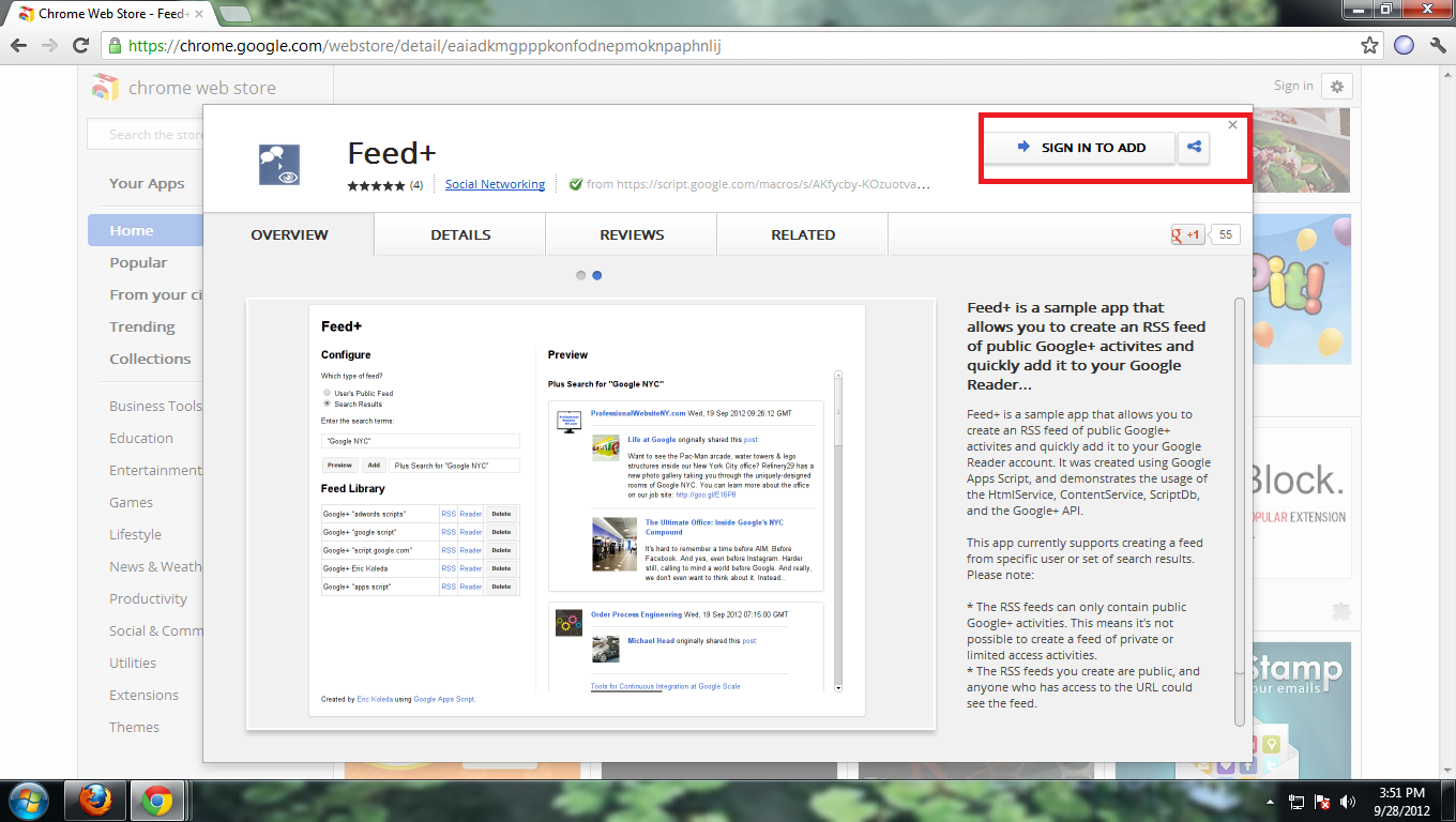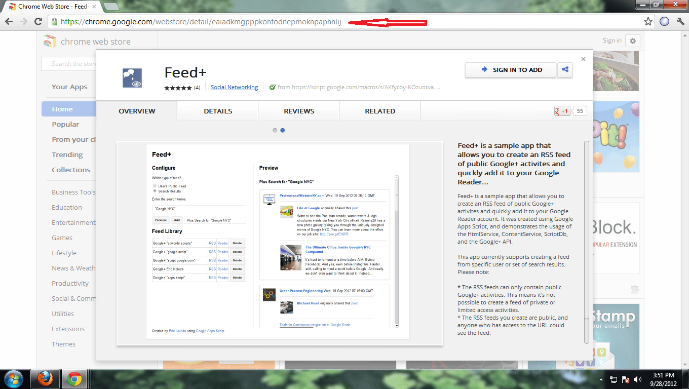 - Go to Chrome web store and make search for Feed+ app. You may access desired location of Feed+ app after Clicking Google + RSS Feed