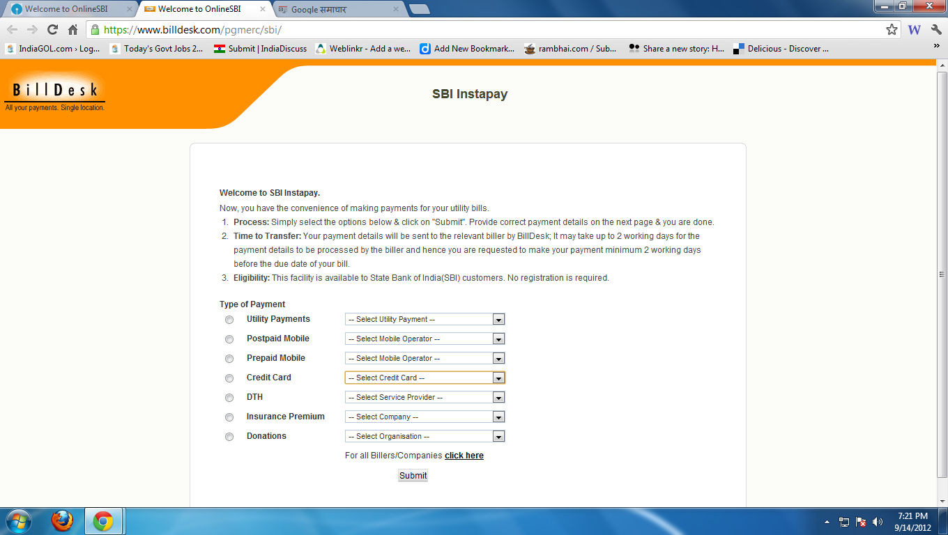 Whenever talking is on about banking services many people come and put their suggestions as well express their experiences. To Keep an eye at suggestions we see similarity in view. As most of the common people asked for more efficient Online banking. Showing attachment to people suggestion SBI installed upstage of online banking service. The newly facility is known as SBI-InstaPay. The ‘SBI-InstaPay’ facility leads to make easy payment of utilities bill as Electricity / Gas, Recharge of Prepaid & Postpaid mobile services, Credit Card Bill, DTH, Insurance premium etc. Besides of making payment you may be able to make donation into Sidhi Vinayaka Trust.