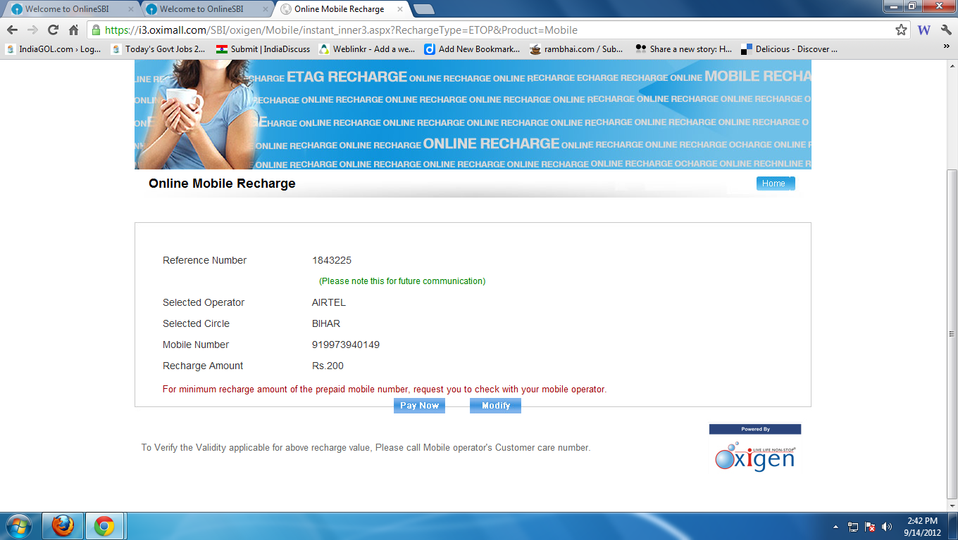 At the earnest SBI introduces another valuable online banking facility name as SBI-OxiPay and SBI-InstaPay. Whether you used online banking for making payment of services like Mobile Recharge, DTH Connection Recharge, paying electricity / phone / mobile / gas / credit card bill, insurance premium etc; you need to log on to particular website and after then did rest. But these two options are quite advanced in nature, offers solitary environment to make payment. Here common question floats; what does a user do to get max benefit of SBI-OxiPay option.